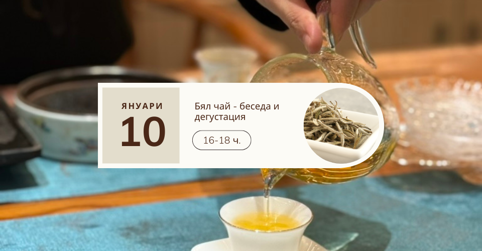 Билет за тематична чаена среща, беседа и дегустация на Бял китайски чай (2 вида) от провинция Юнан.